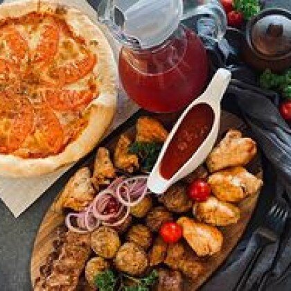 Шейка свиная (200 г), рёбрышки свиные (250 г), куриная грудка (200 г), куриные крылышки (200 г), люля говядина (200 г), люля куриный (200 г), лук на мангале (200 г), соус от шефа (250 г), пицца Пеперони (30 см)