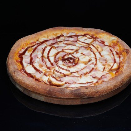 Бекон варено-копченый, сыр моцарелла, сыр пармезан, яйцо, базилик, пицца-соус (30 см)