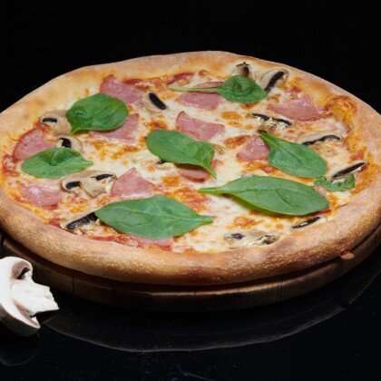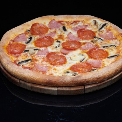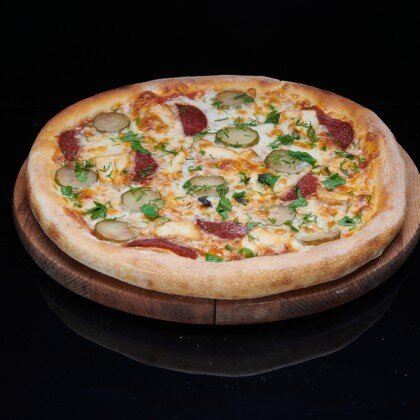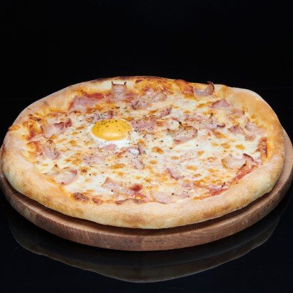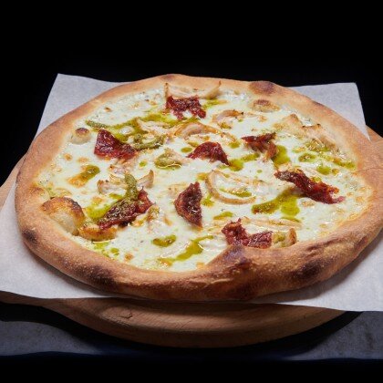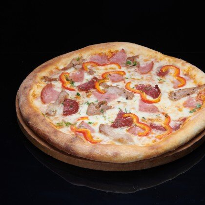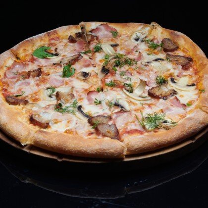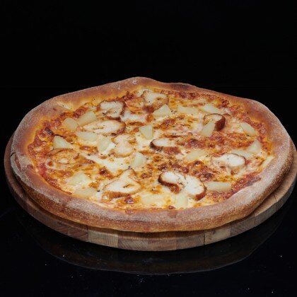 Бекон, куриное филе, моцарелла, пицца-соус, соус барбекю
